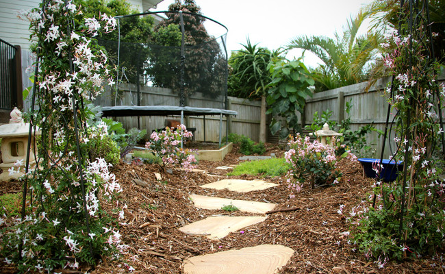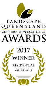 Affectionately termed ‘The Party Garden’, this stunning Mt Cotton outdoor space demands attention. The garden draws inspiration from the contradiction between fire and water. The open fire, floating above a bed of resin-set blue glass, is the centrepiece of the garden in both form and function. Framing the area is a custom-made, aluminium composite screen, depicting the Shire from the Lord of the Rings, a polished concrete bench (that glows in the dark), Helidon sandstone feature gardens and edible planting. This project was featured in the Summer 2016 edition of Queensland Homes magazine and won the 2017 Landscape Queensland Construction Excellence award in the Residential Category.